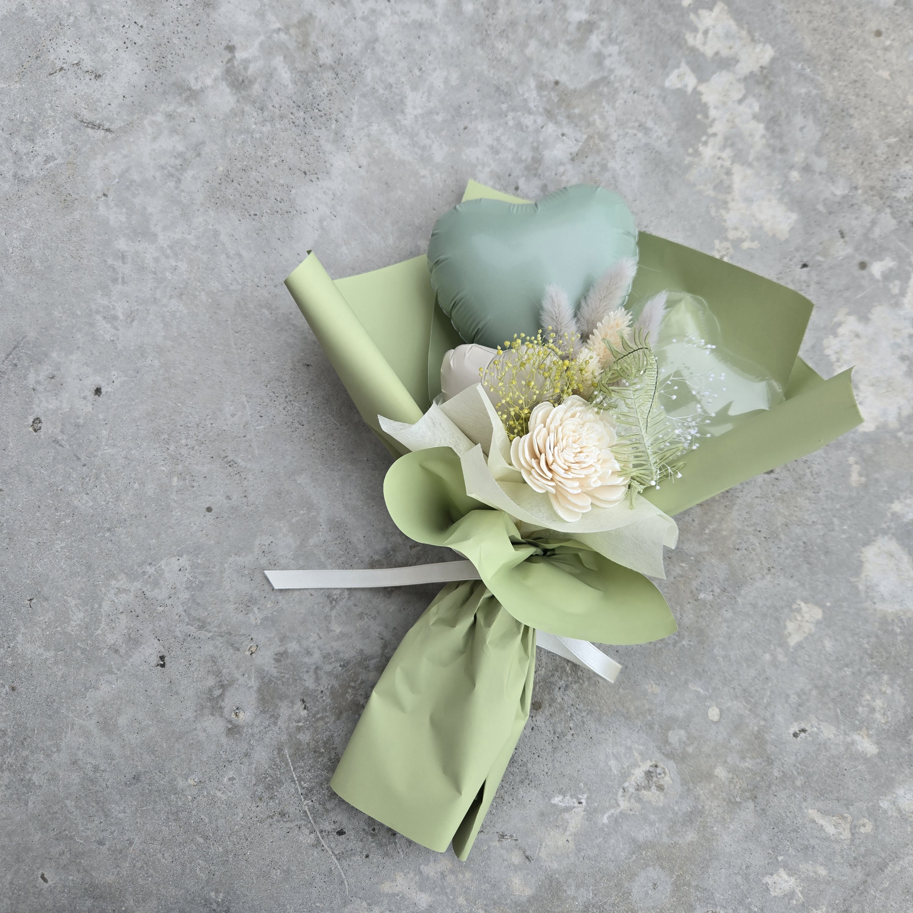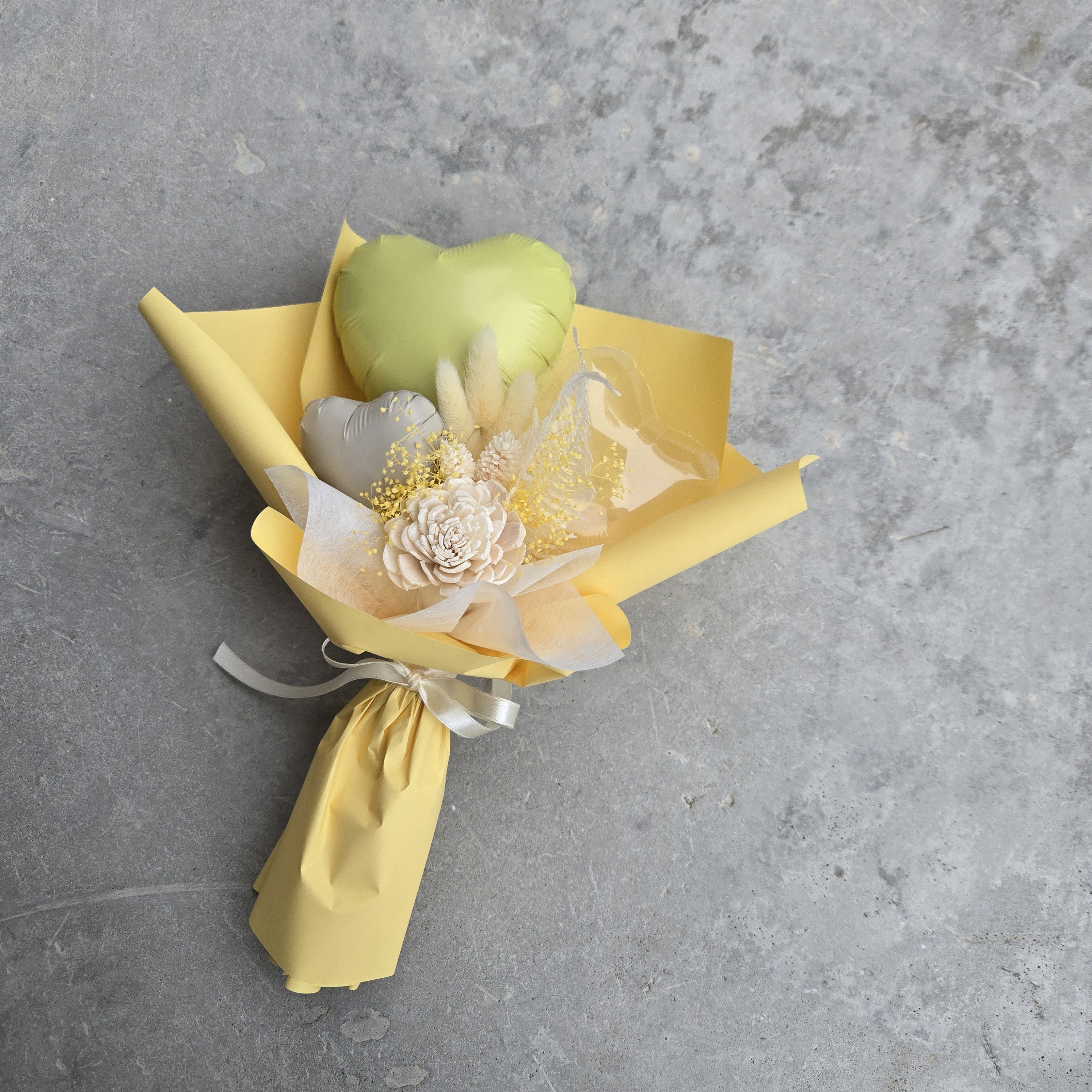 ドライフラワーとバルーンでアレンジしたナチュラルブーケ
