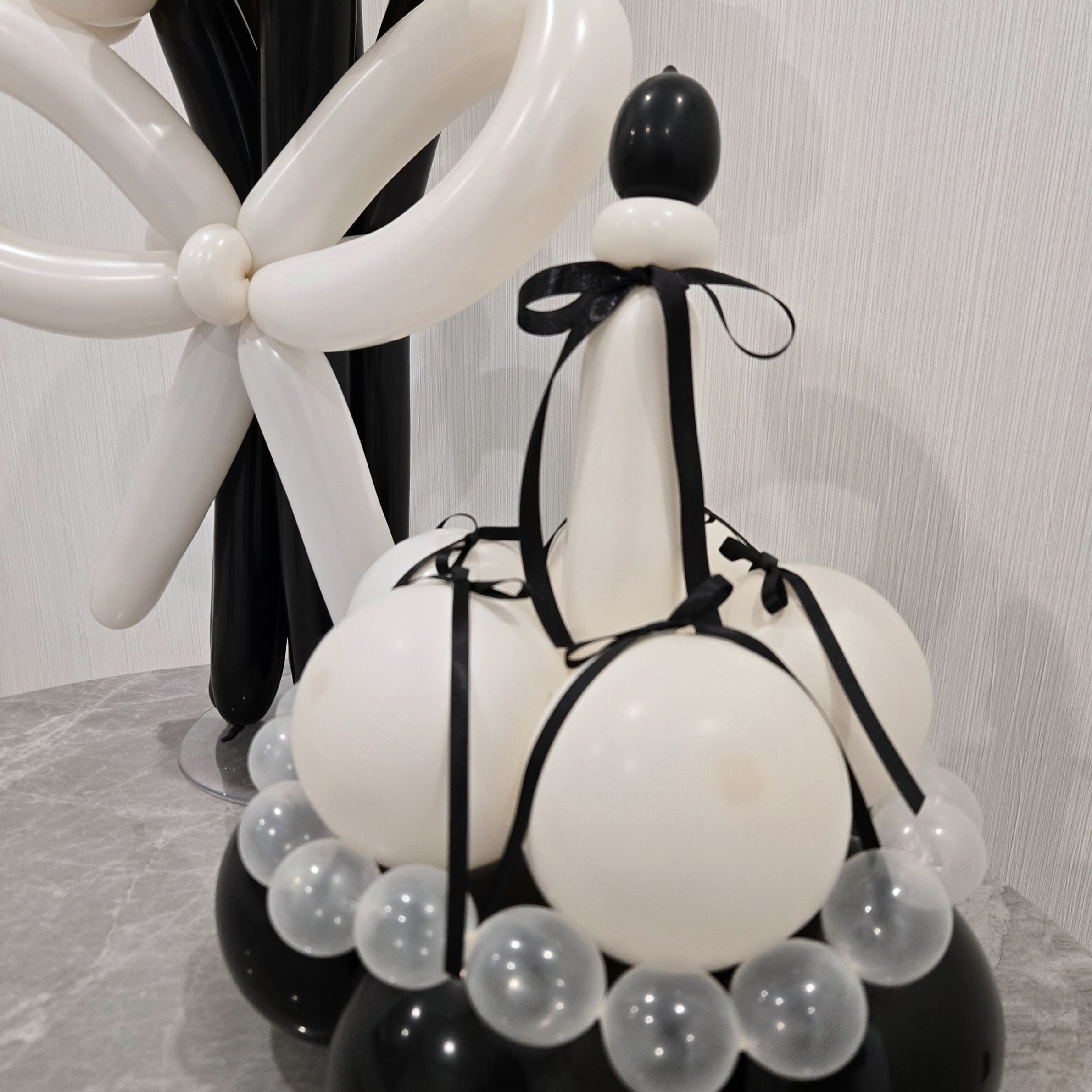 ゴム風船でできたケーキとバルーン花束