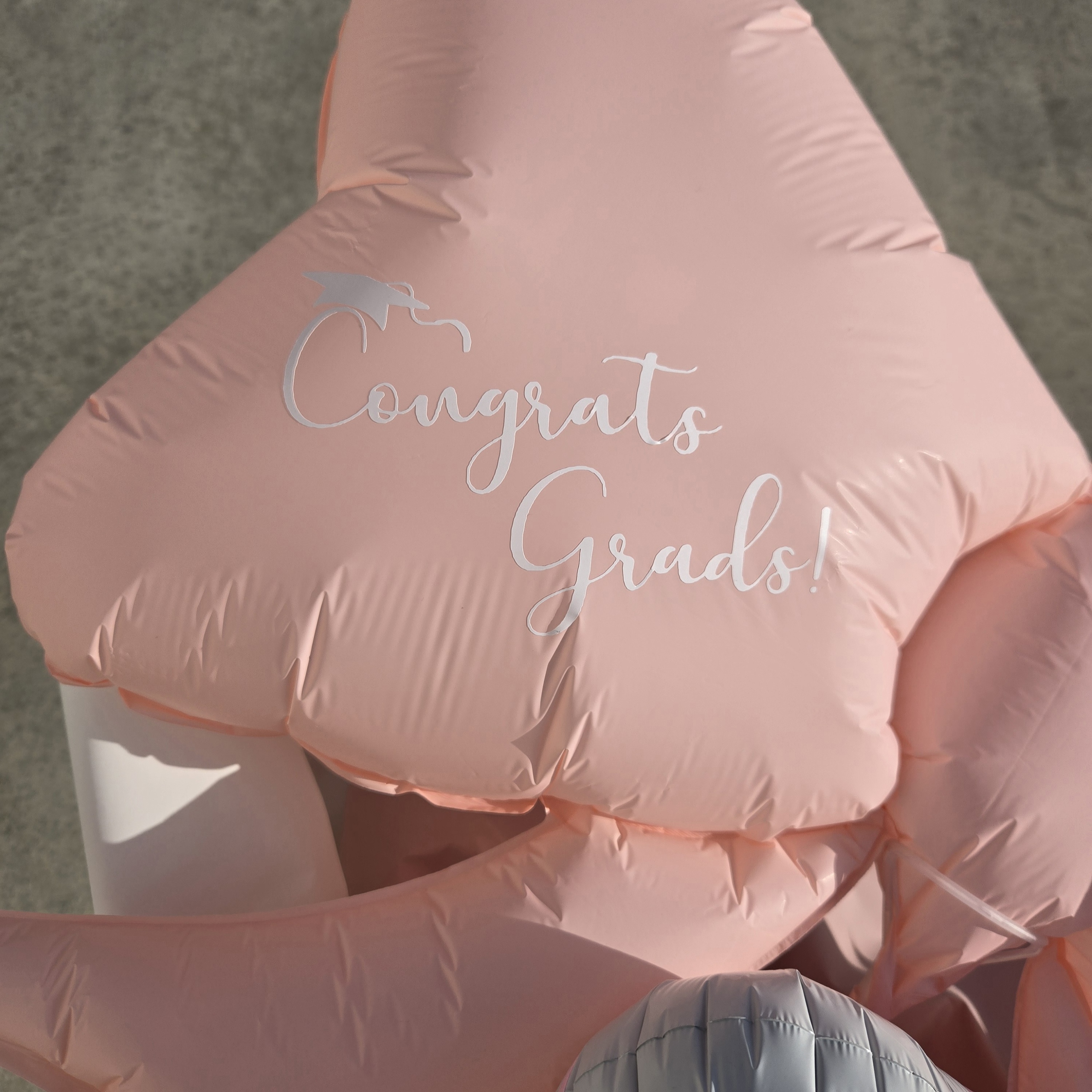 リボンバルーンには「卒業おめでとう」のメッセージ付き