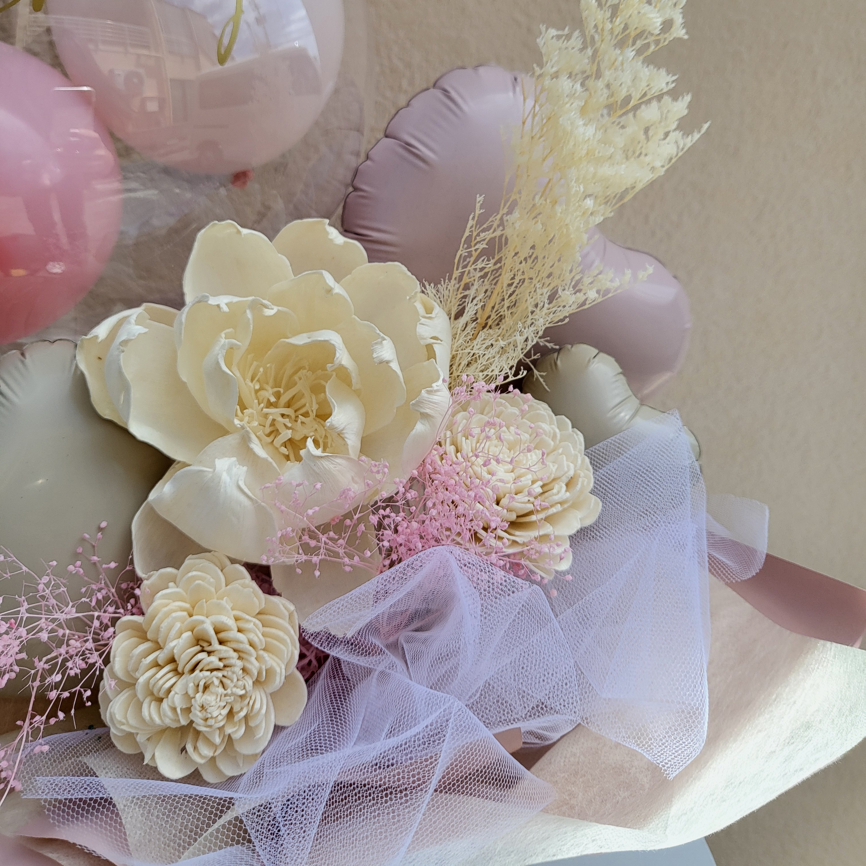 ふんわりと咲く“さくら”のように、あたたかくて優しい気持ちを届けるバルーンアレンジ。
