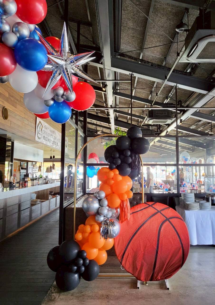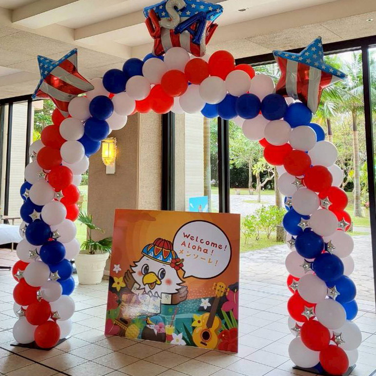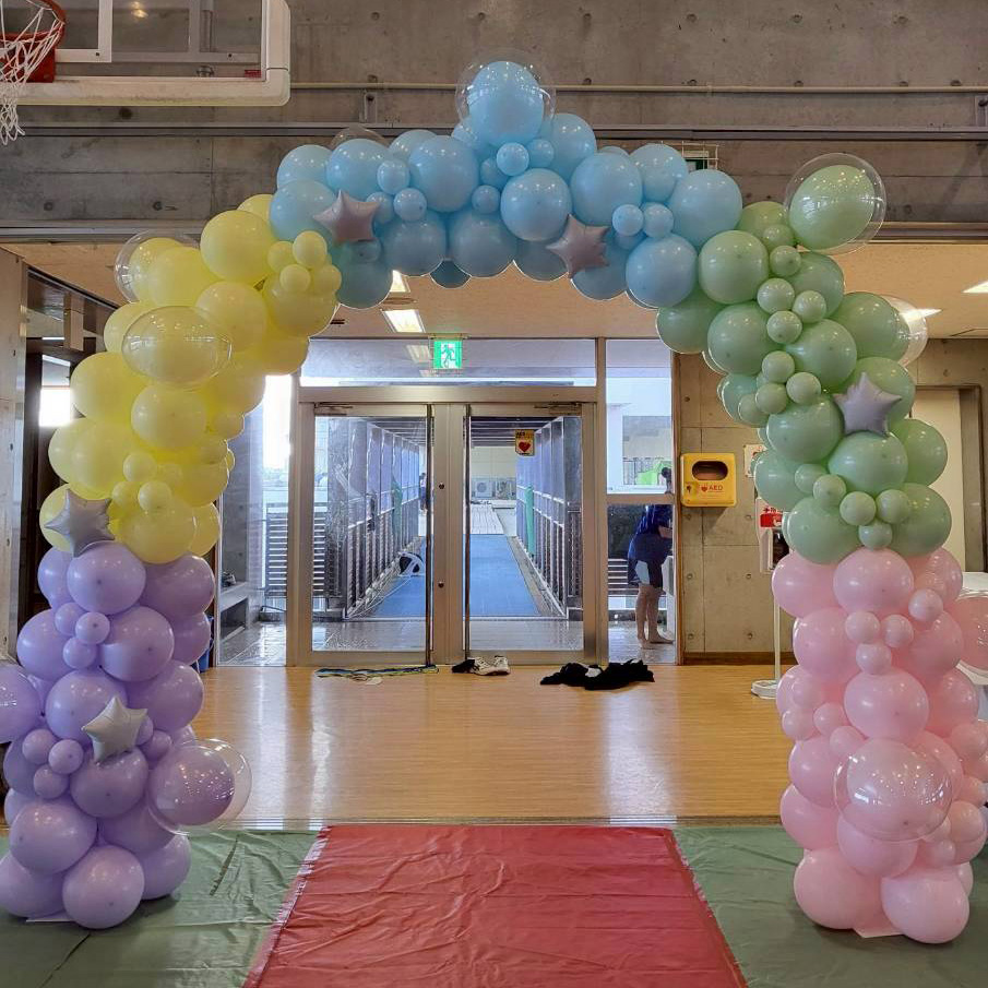 ブランドカラー・衣装ロゴ・イベントテーマに合わせたバルーン装飾で